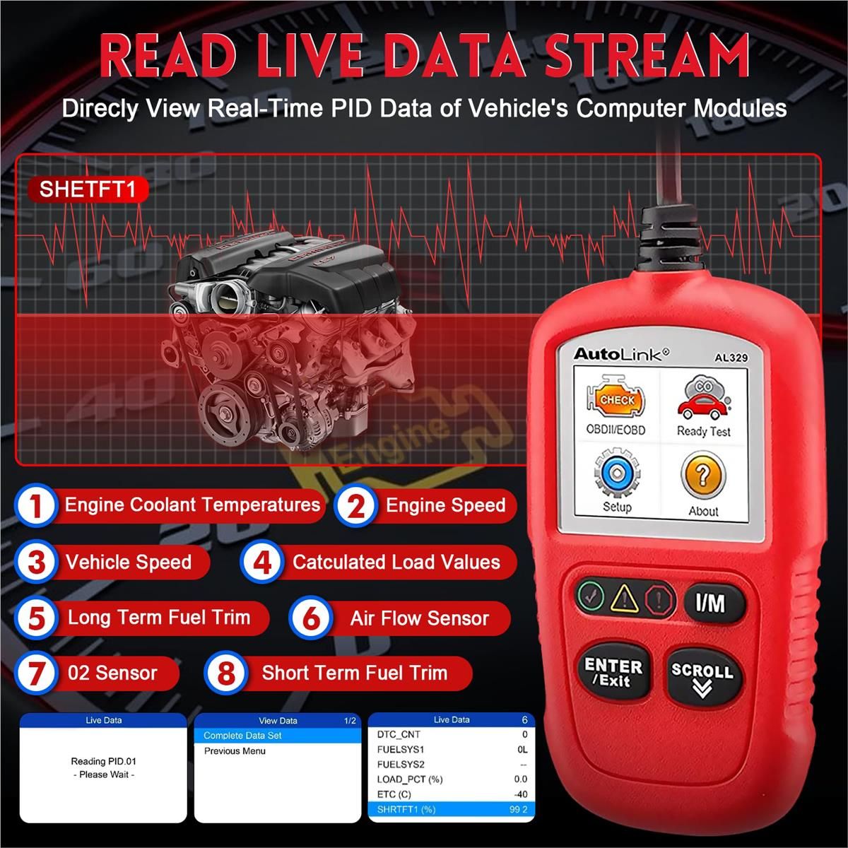 The AutoLINK AL329 is the perfect DIY tool to scan your OBDII vehicle for engine codes. Quickly check malfunction indicator light status and cause. OneClick I/M Readiness (Emissions) Status key checks to see if vehicle will pass state emissions limits. The tool's color display and quick key navigation makes using this tool clear and trouble free. The AL329 is compatible with domestic, Asian, European vehicles, 1996 and newer. Read and Clear Current, Pending and Permanent Codes and query Freeze Frame Data. Retrieves vehicle identification information (VIN, CALID and CVN). AutoVIN function enables the tool to display vehicle-manufacturer codes when found. The tool's software can be updated free for the life of the tool. Technical Support is free.
