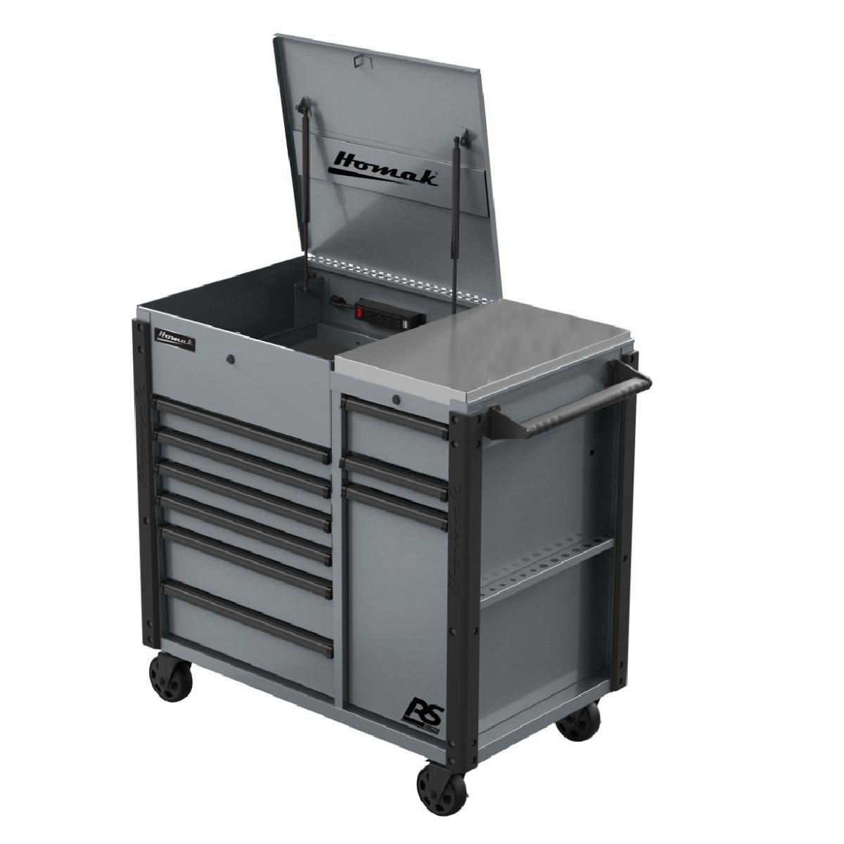 Homak Manufacturing 44 Inch RS Pro 9 Drawer Flip Top Power Service Cart w/ Workstation